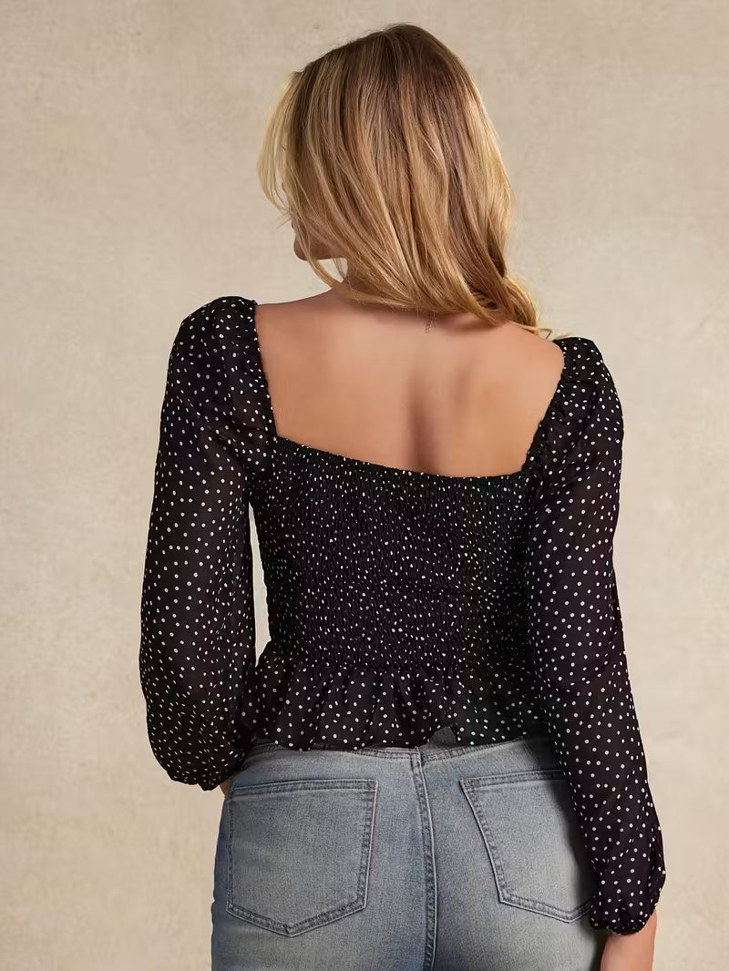 Blouse élégante à col bateau et manches bouffantes pour femme